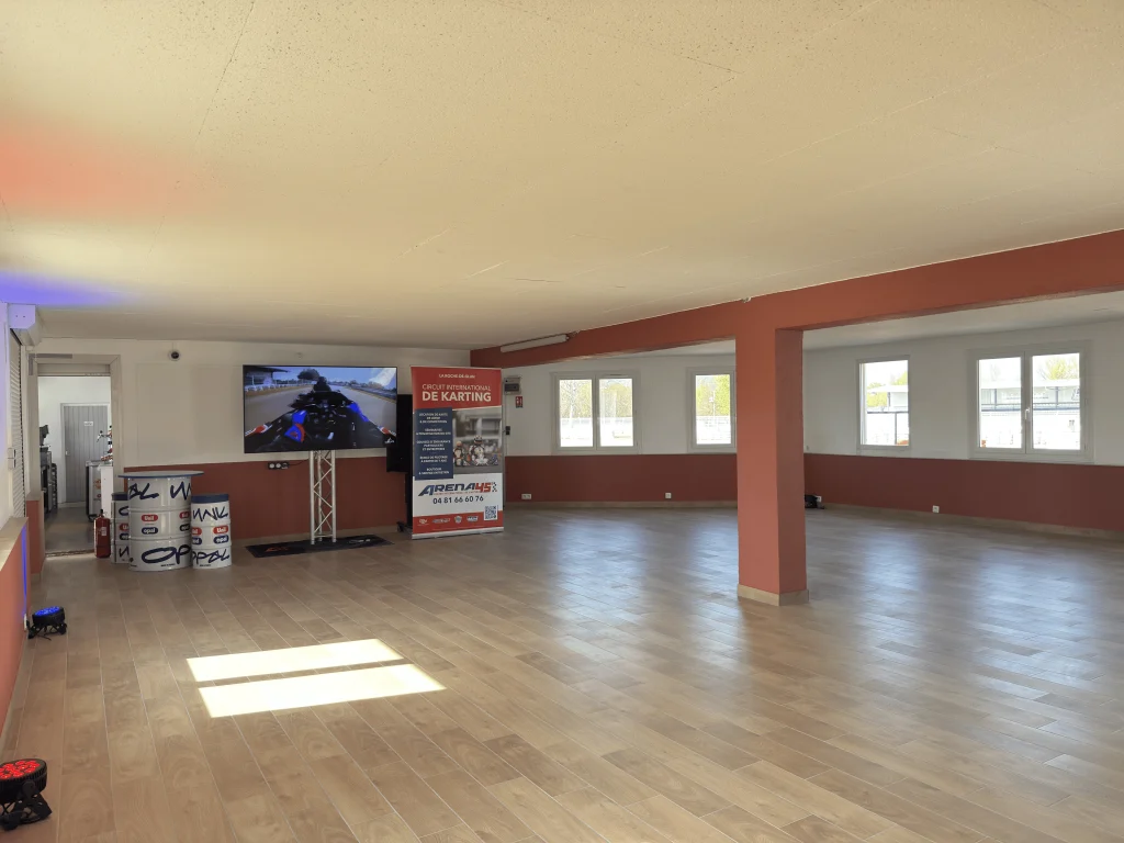 Située au cœur du complexe, cette salle peut être combinée avec des activités karting pour offrir une expérience originale et dynamique à vos invités.